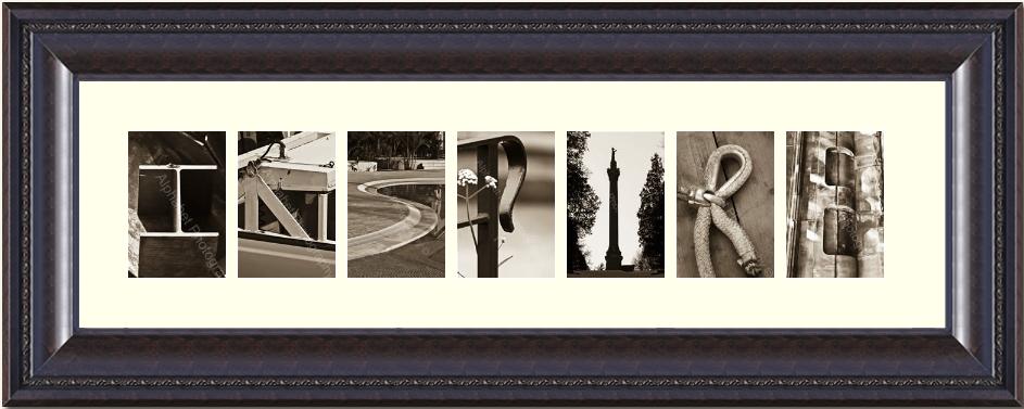 Alphabet Photography offers framed words to go packages, including the fame, mat, and pictures at a flat rate of $139.95 plus shipping ($20). What I love is that they don’t charge you per letter for the framed sets – unless you go over their maximum, as I did when I typed in Beeblebrox.