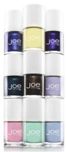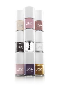 Right now the collection includes 26 shades plus a top coat, in three vague collections including ‘Spring’ (Hard Candy-esque pastels and shimmery metallics), ‘Pinks & Reds’ (your safest bet, although my fluorescent Coral came from here), and ‘Neutrals’ (gold, silver, white, and a few muted pinky-tones). The colours represent a departure in many cases from the norm, and a welcome update to your classic reds and pinks in others. Now I’ll just have to resist the temptation to stop by the Joe Beauty kiosk everytime I’m in the store…wish me luck!