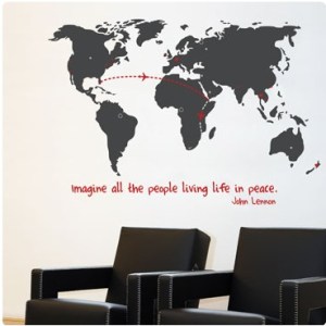 When I dragged the boyfriend over to check out my haul, he quickly glommed onto the fact there is more to mur*mur than meets the clock-fixated eye. The company also has jumbo-sized mural-style decals, including the very awesome world map we bought (pictured above). If you don’t have a whole wall to spare, you can easily snag one of their smaller decals, or get creative with their chalkboard decals, nifty mirrors, glow-in-the dark panels, and more!
