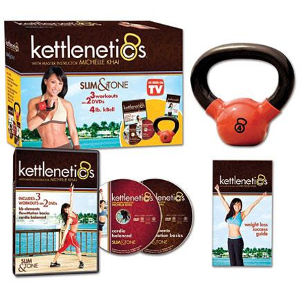 Explanation over, onto the gift idea. If you want to introduce a total noob to the world of the kettlebell, consider picking up the Slim & Tone Kettlenetic Set for just $50 at Sears.ca. Featuring a 4 lb kettlebell, 2 dvds with 3 dance-inspired workouts, and a fitness guide, the set provides all the basics at a reasonable price to test the waters of this relatively newly popular activity.
