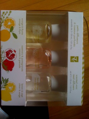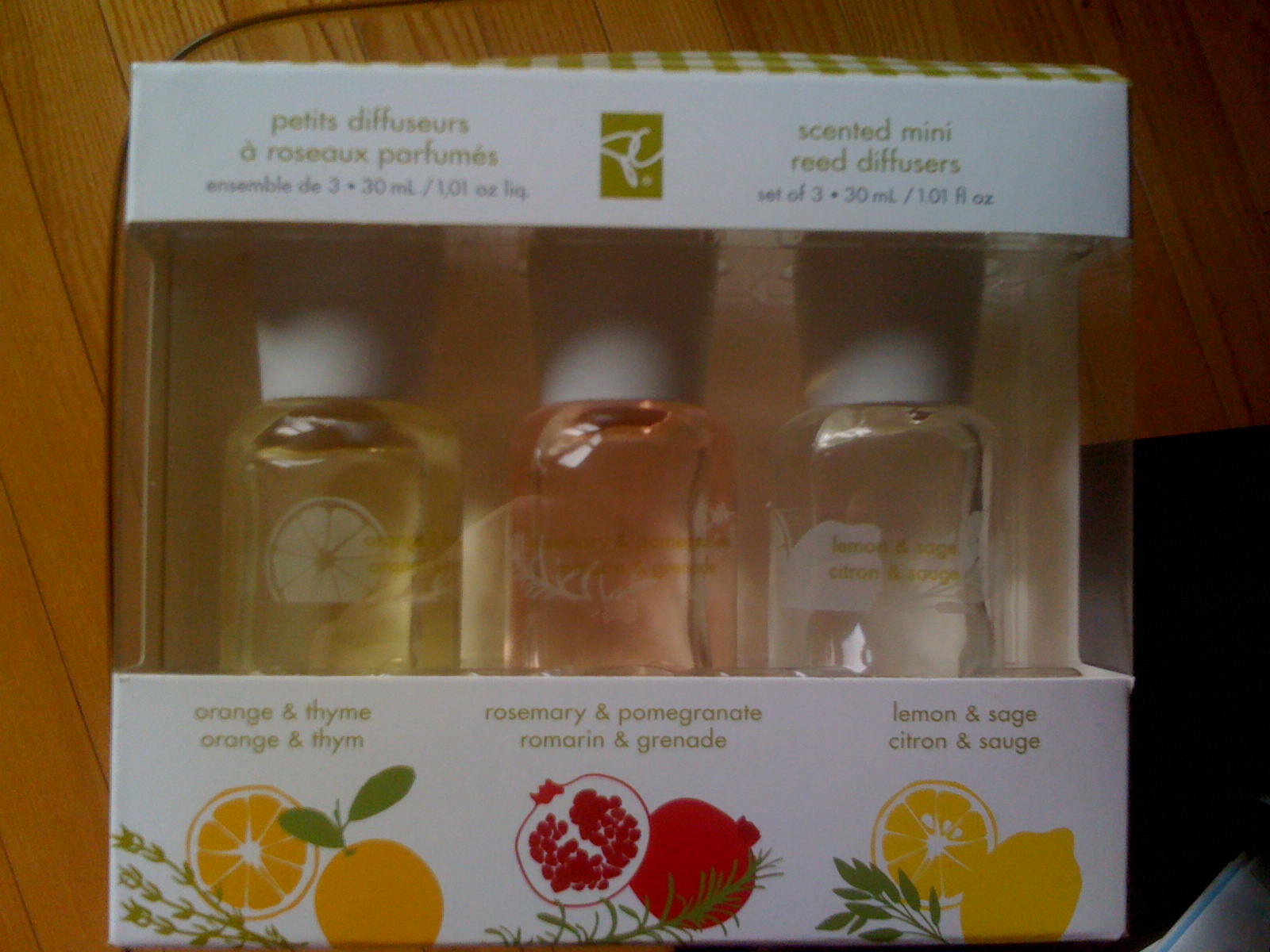 I first got a Superstore diffuser as a gift a couple of Christmases ago. Vanilla Peppermint if I believe. I have a very curious cat who I don’t want killed, so I only put diffusers in my office. Anyway that first one was alarmingly strong – like my eyes watered if it was positioned too close to me. But after some time we all got used to it, and the scent spread all the way to the front door of our office. Pretty groovy for a $4 container of essential oils and sticks.