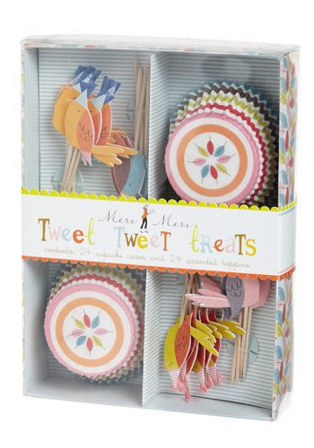 The site sells these handy-dandy cupcake kits in two themes for $13 (USD) a pop – a birdy/spring-inspired one shown above, or a tres magnifique Parisian one shown below. Each kit contains 24 cupcake liners and 24 toppers on their respective themes, making them perfect for your next party-sized batch of deliciousness.