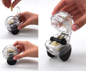 This is a gadget I personally own and am obsessed with. I HATE chopping garlic more than life itself. And while you can get jars of preserved pre-minced garlic, I find they’re never quite as flavourful as using actual, fresh-chopped garlic. Enter the Garlic Zoom. All you do is peel your bulb, toss it in the capsule, and roll the thing back and forth. Twenty seconds later you have a perfectly minced pile o’ garlic. It’s BRILLIANT.