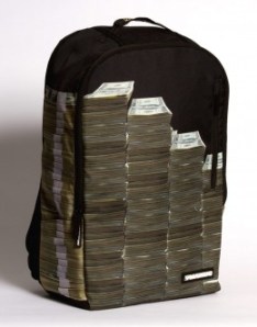 Although the folks behind Sprayground are moreso known for their graffiti-inspired packs, their fall collection draws on everyday materials in a very fun way. The bags are also uber practical – a main compartment features pockets for you iPod, iPad, and phone, while a secondary compartment snugly fits a 17″ laptop: perfect for students, writers, and freelancers on the go. They ship to Canada, but it is a little pricy – $20-ish – so choose wisely!