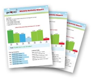 There’s an online social networking component to GeoPalz. Kids are encouraged to log on everyday to post the number of steps their pedometer tracked for them – with an anti-cheat function built in, plus a ‘vigorous activity’ tracker for gym class or just running around. As they add steps, they earn ‘points’ that take them through a virtual map of the GeoPalz world. At certain checkpoints they score virtual trophies and free real world goodies – including gift cards for iTunes and Farmville, or more activity-driven items like frisbees and soccer balls.