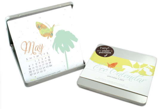 I’m talking about Botanical Paperworks – makers of plantable paper products. Unfamiliar? Here’s the scoop: all of their gear – from invitations to greeting cards to journals – is actually made from post-consumer materials. That means no trees were harmed in the delivery of your seasons greetings. When the recipient of your card is done with the season – and logically your card – all they have to do is plop it in a pot and it’ll bloom into flowers, herbs, or vegetables depending on what your particular paper piece is embedded with.