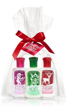 I think I’ve sung the praises of Bath & Body Works purse-friendly hand sanitizers quite a few times on here, but I will mention that all of their holiday scents are available in Pocketbac form, including fun and incredibly frugal gift sets like the ‘Holiday Treats’ collection pictured here. Use ’em as place settings at your holiday dinner so everyone walks away with something fun and festive.