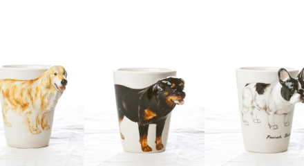 Calling all puppy lovers – today’s gift pick is part-art, part-heart. These pretty, hand-painted ceramic mugs are a bold way to show pride for your pooch, and a nifty, ritzy gift idea for just about any dog person in your life.
