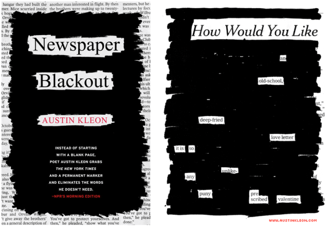 What it is: Part humour, part poetry, Austin Kleon’s collection takes pages from the New York Times and blacks out any words he feels he doesn’t need. The result? Wry looks at the meaning (or lack thereof) in our daily news.