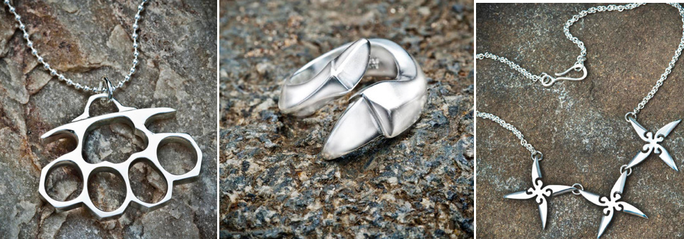 You know that piece of jewelry your best friend, or your mom, or even that girl on TV has that just makes your jaw drop and your stomach flip flop a bit? And then you go home and look at your own collection and lament – why don’t *I* have something that striking / eye-catching / awe-inspiring? That’s sort of how I feel about the pieces from New York jewelry designer Alex Story. They’re such a stunning mix of tough motifs and delicate cutwork it’s hard not to covet just about everything she creates – and I just had to bring light to her great stuff to all of you kids.