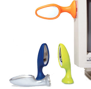 If you’re like me, then you *hate* having your back to the world while working on a computer. Apparently so do the whiz kids behind this nifty gadget – a brightly coloured attachable mirror that allows you to see when the higher-ups are hovering nearby. Pick it up for your favourite coworker, or gift your spouse when they start a new job.