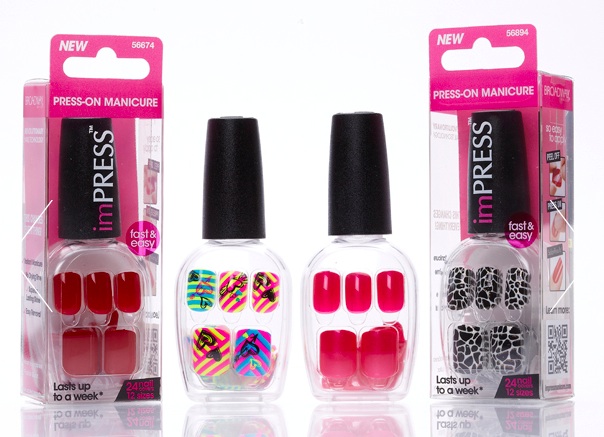 I am the type of gal that loves doing her nails. Notice I didn’t say ‘getting them done’ – although I appreciate a nice mani or pedi as much as the next person, I have a blast cruising the shelves of pretty pastels, gorgeous glitters, and stunning seasonal shades that the beauty industry plops into your local drug or beauty store. Lately however, I’ve been paying attention to a new trend. Or should I say, an old trend that’s been given new life, in the form of no-paint nails from imPRESS press-on nails by Broadway, and Kiss Nail Dress stick-on nails.