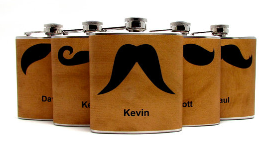 Customized Mustache Flasks – $92 for five @ The Hair of the Dog