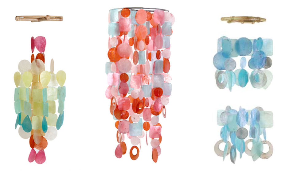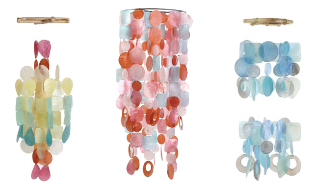 I love the Capiz Shell Wind Chimes & Chandelier. I bet they look even more beautiful in real life and sound delightful.