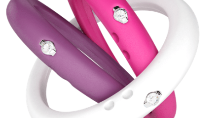 Give your hands a colour shot with these eye-catching rubber rings inlaid with real sparkly diamonds.