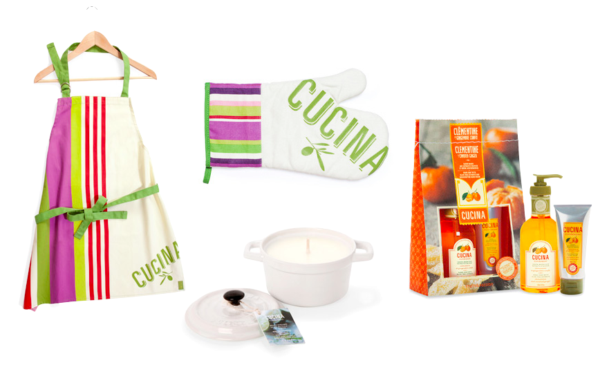 If you’re unfamiliar, Cucina is Fruits & Passion’s line of kitchen-friendly goodies that channel the aromas of fine culinary concoctions – like Lime Zest and Cypress or my personal favourite, the holiday-appropriate Clementine & Candied Ginger. This year you can sample a huge range of Cucina products, including actual kitchen basics for $10 or less like a colourful apron, insulated oven mitts, and wooden spoons – all of which complement the full line of soap and hand lotion gift sets and individual products for a truly inspired self-created gift set.