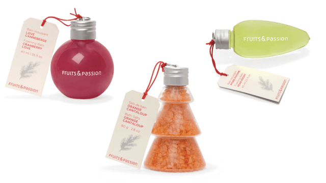 This year’s Fruits & Passion primary holiday scents are exotic blends of fruity fragrances – including Cranberry Love, Orange Cantaloup and Pear Peony. Sample all three of them in pint-sized form with one of these stocking-friendly goodies. Go for ultra-foamy bubble bath in cute ornament and Christmas bulb containers, or soak up a delicious scent when you sprinkle some bath salts in your tub.