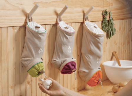 When your mind drifts to brunch you may immediately think of pancakes and bacon, but don’t forget about those savoury side dishes that make this mid-day meal what it is. I’m talking garlicky scrambled eggs, onion-loaded quiche, and seasoned homemade hash browns, to name a few. Keep your root veggies from going rotten with these clever ‘keep sacks’ which hang up to save cupboard space. Their ingenious design allows air to flow in but blocks out the light, to keep your most steadfast of ingredients from sprouting.
