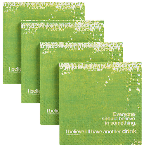 If you’re going to serve up cocktails and appetizers with napkins, make sure they’re eco-friendly. These cheeky napkins are as green as their colour; they’re made from 50% recycled material and 50% sustainably sourced, and use water-based inks. Makes a swell hostess gift.