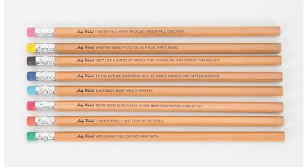 Andy Warhol inspires yet another fab gift idea – this time in the form of sleek natural pencils with a pop of colour and quip from the artist himself.