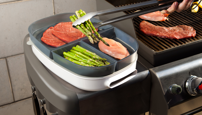 I like the Porter BBQ tray @ Quirky Would save many trips back and forth from the kitchen to the BBQ.