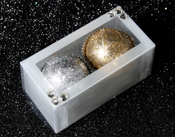 DIY OPTION: Admittedly it may be hard to find something quite so glittery to deck out your desserts with, but plenty of local chocolatiers would be happy to whip up some special truffles for you to tuck into a custom box.