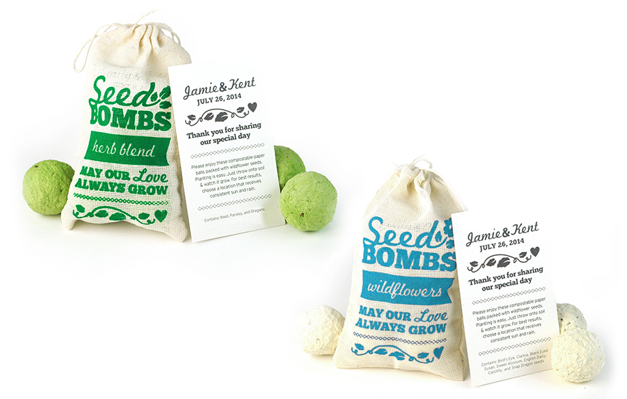 Having an eco chic celebration? Botanical Paperworks is a fantastic source for tons of affordable (moreso than this item really) wedding favours. These rustic burlap sack seed bombs allow you to create a custom message and spread a little love to the earth after the event.
