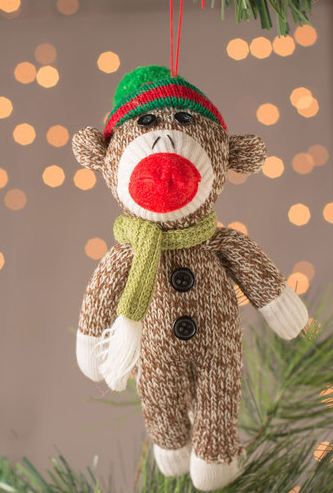I’m pretty sure every year, the sock monkey finds a way to be featured on this blog around the holidays. This adorable ornament features this ubiquitous holiday toy dressed up in his warmest winter gear, for a cute stocking stuffer or Secret Santa pick.