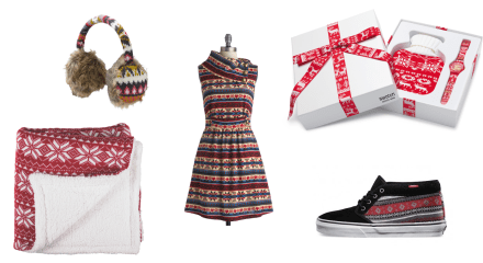 Filed under All That Glitters, Dress You Up In My Love, Home Run, Trend Watch, Walk This Way · Tagged with Blanket, Canadian Tire, Clothing, Dresses, Earmuffs, Gift Set, Gifts For Guys, Joe Browns, ModCloth, Shoes, Swatch, VANS, Watch