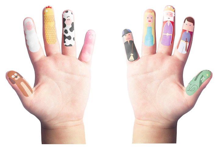 It’s not talking to yourself if you’ve got characters tattooed on your fingers, right? These fun, temporary tattoos put story time right into your child’s hands. Available in Farm, Safari, Fairytale and Monster collections.