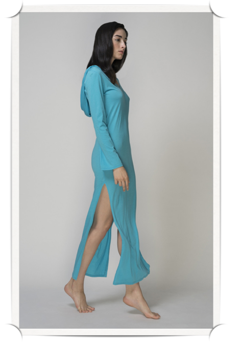 I would really love to receive the Hooded Caftan,it looks so lovely,in that pretty blue shade and I LOVE the simplicity of the whole piece! I would be most apt to try the,les gourmands,tea collection,because I love anything SWEET!
