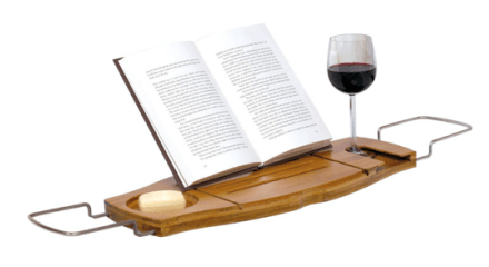 If you love baths then you’ll love this gift idea: a handsome bamboo bath caddy to stash your wine, your read, and your soap.