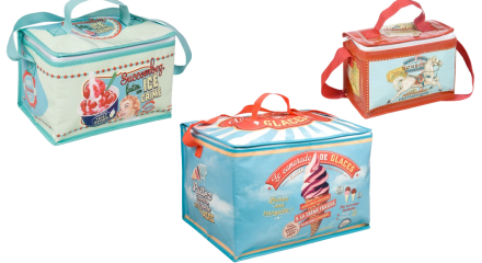 What It Is:Retro-themed insulated bags in three different sizes. Each size features a unique, summer fun print – from a swirly scoop of ice cream to a mouthwatering sundae to a cheerful carousel horse – perhaps giving a glimpse of the treat within (horse notwithstanding). The bags are designed to keep drinks, sandwiches and other … Continue reading →