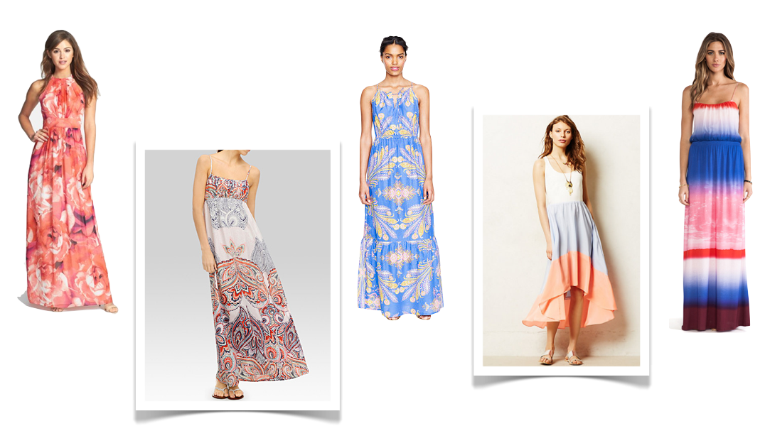 Twelfth Street by Cynthia Vincent Contrast Maxi – $263 @ Revolve: Willing to go designer? Revolve has a mind-blowing selection of maxi dresses. I love the bold pairing of colours here, reminiscent of a ‘Rocket’ Popsicle, as well as the subtle sky / ocean pattern at the mid-point of the skirt.