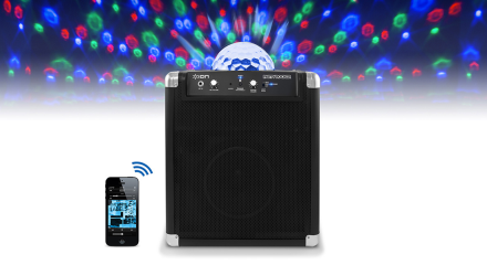 Turn up the fun factor at any party with this powerful wireless speaker with its own built-in light show.