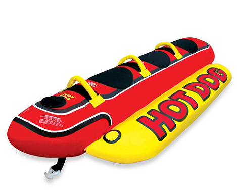 I like the “Airhead Hot Dog 3-Person Towable Inflatable!” Not only does it look hilarious, but it looks like fun!