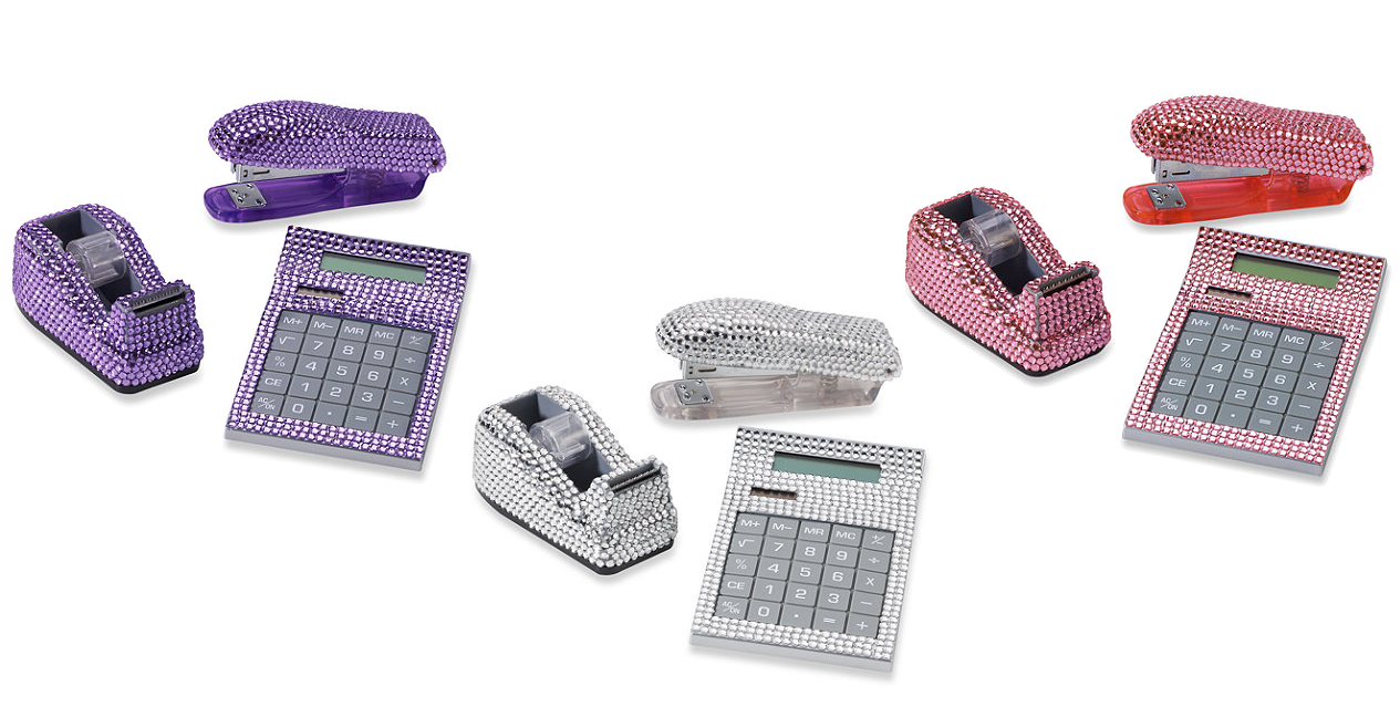 Back to SparkleWhat It Is: One surefire way to get geared up for the new school year? Invest in some ultra fun office accessories, line one of these three rhinestone-encrusted sets. Available in purple, white and pink, they’ll liven up any desk – from the dorm room to the office to a classroom desk. Each set includes a stapler, calculator, and tape dispenser, so you can get organized, crafty, and manage that monthly budget.