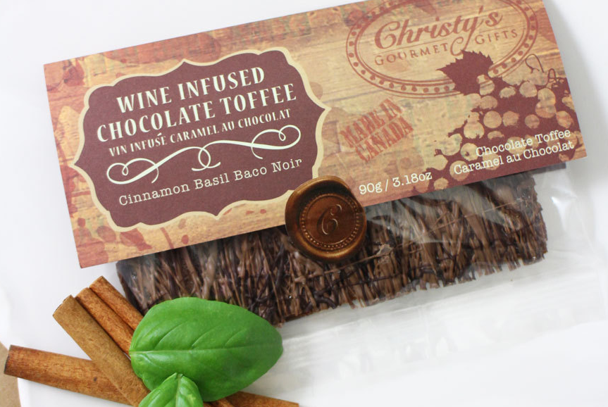 Here is a sweet treat for me: Wine Infused Chocolate Toffee – Cinnamon Basil Baco Noir.