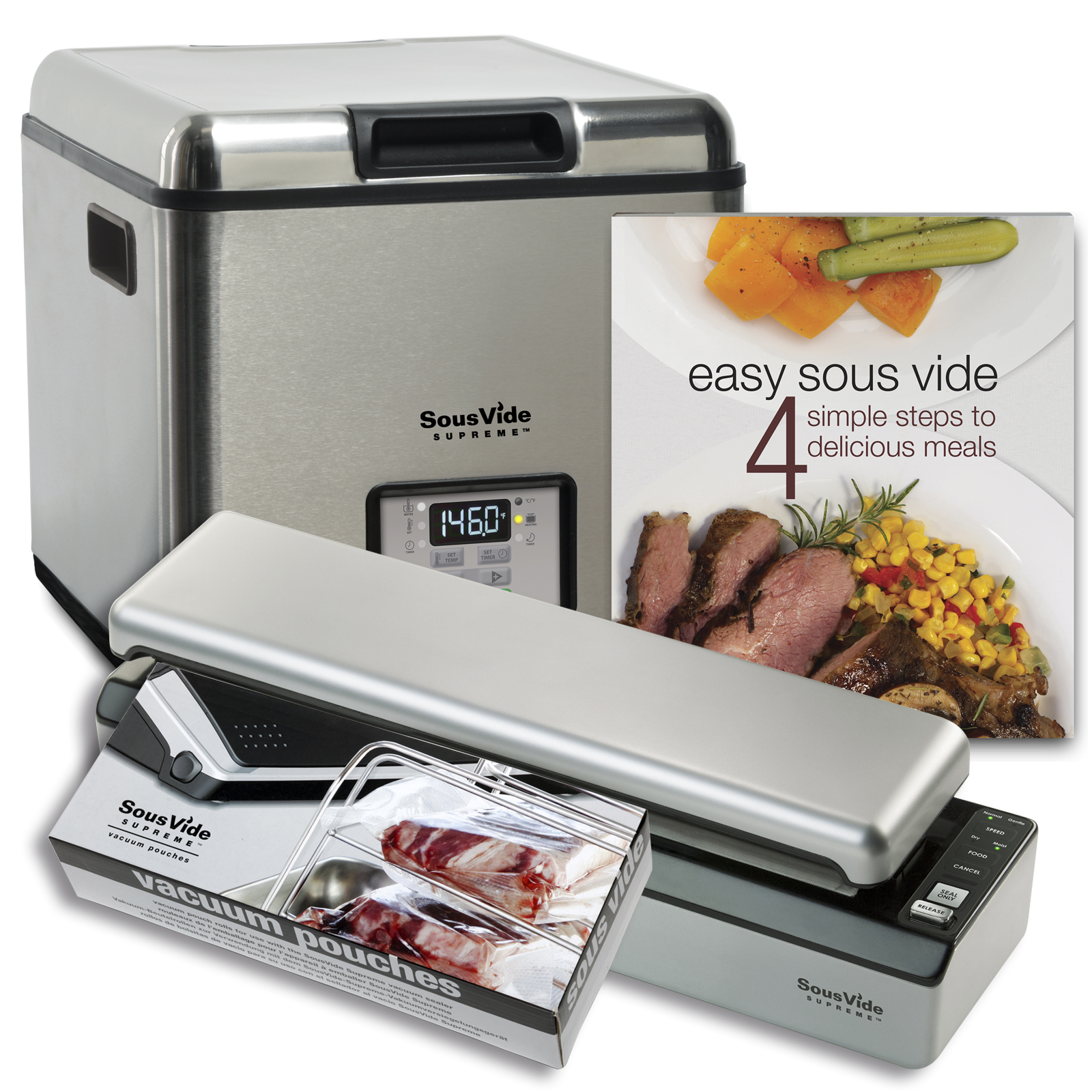 SousVide Supreme Starter PackageIf you’re interested in trying your hand (or hands off) at sous vide, the SousVide Supreme Starter Package includes everything you’ll need to get cooking – including the machine, vacuum sealer, pouches, a cookbook and a helpful DVD to start you on your path – all for $559. Not a bad price for peace-of-mind that your meal is going to turn out absolutely deliciously and for the record, probably more healthy than frying.