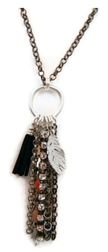 Although many pieces in the Jewelry by Andrea line are made of metal, there’s also a heavy integration of gem-hued stones, including a prevalence of that holy trinity: rubies, sapphires and emeralds (not real, of course). If you’re looking for a fantastic gift under $40, may I point you in the direction of the line’s Athena Earrings, which come in all three of the aforementioned shades, plus a dusky grey. These simple danglers catch the light beautifully and won’t drag down your earlobes, making them comfortable to wear all day. They’re an ideal choice for your best friend, sister, or mother-in-law – especially because, like all Jewelry by Andrea items, they come pre-packaged in their own convenient little pouch inspired by lands far, far away. Jewelry by Andrea Feather & Leather NecklaceFeather & Leather Necklace – $85