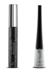 Glitter Eyeliner and Mascara The Body ShopBlack & Gold Glitter Mascara – $15 + Glitter Liquid Eyeliner – $15