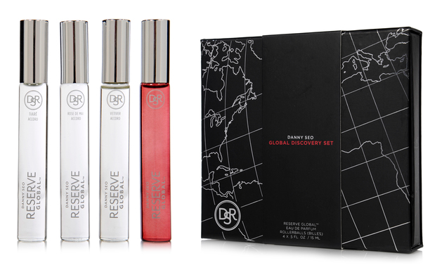– A Danny Seo Reserve Global Collection (including a 1.7 oz perfume, a 15 ml rollerball, the Global Discovery Rollerball Set, and a Reserve Global Deluxe Body Cream)