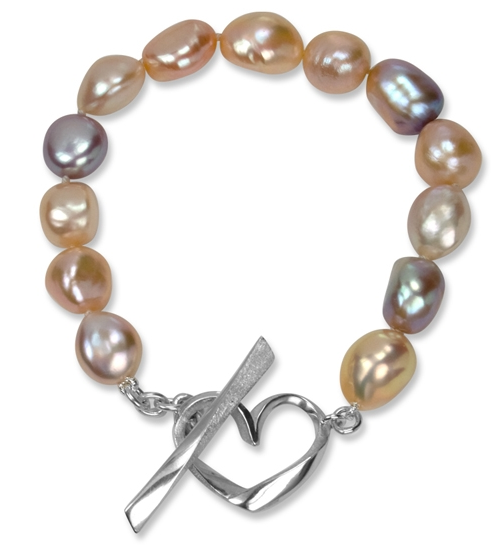 Pamela Lauz Jewellery Hearts Pink Baroque Pearl Bracelet