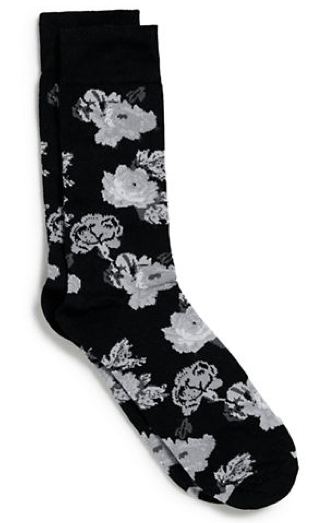 Guys aren’t totally forgotten when it comes to floral looks – these masculine socks bring just a touch of femininity with their bold, contrasting grey and white floral pattern.