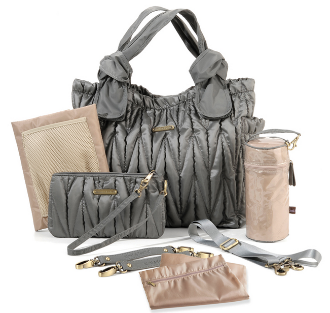 timi & leslie Marie Antoinette Bag Silvertimi & leslie diaper bags are sold all over boutiques and major retailers in Canada and the U.S. Up north, you can find them at Buy Buy Baby Canada and Indigo, to name just a few, plus they also ship to Canada from their website. All of their bags are rendered in stylish designs that make them virtually indistinguishable on the outside from your favourite purses and totes, but on the inside, contain everything you need to stay organized, like the Marie Antoinette bag in Silver, above ($169 – all prices in USD unless otherwise noted). This sumptuous bag includes all of the essentials new moms need – like an insulated bottle holder, a zippered sac to tuck soiled clothing into, and a change pad for easy, on-the-go diaper swaps.