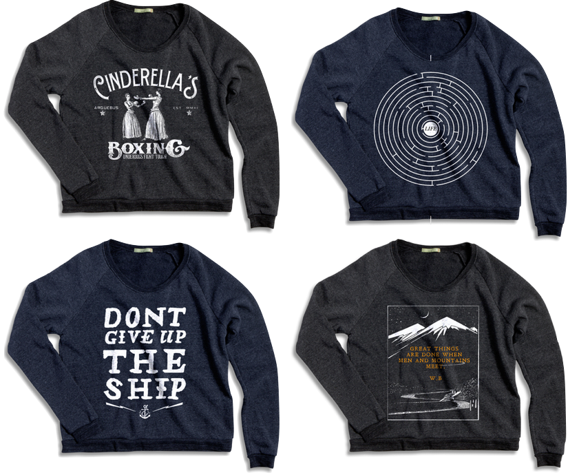 What It Is: I’m in a fashion-y mood as of late – between last week, this week, and next week’s post you’ll have plenty of fashion inspiration. Today’s comes from a U.S.-based tee shop called Arquebus Clothing, which totes itself as creating minimalistic, universally wearable yet expressive designs. Bit of a mouthful, but alright. Their designs are often available across a range of styles – from slouchy sweaters like you see above (perfect for tossing on over shorts or a swimsuit while at the lake this summer) to guy’s tees to ladies’ tanks and more. A lot of their styles have a slightly vintage edge or inspirational vibe to ’em. Take a browse for yourself!