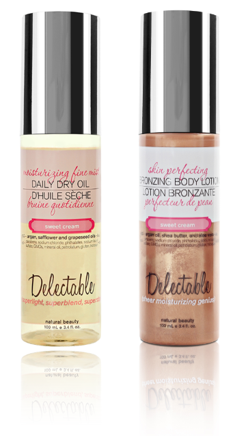 Be Delectable Daily Dry Oil and Bronzing Body LotionWhat It Is: You learn something new every day. I actually had no idea that Be Delectable – a sugary sweet scrumptious line of body care products – was actually a sister brand of Cake Beauty. Like Cake, Delectable is all about delicious scents and natural ingredients. The awesome part? Delectable is super accessible, as it’s now sold in Shoppers Drug Mart locations across Canada. The lineup consists of tons of lather up gift ideas – from shower gels to body butters to hand creams, but this summer they also launched two new products. Their Daily Dry Oil is an awesome moisturizer for those sticky hot summer days, while their Skin Perfecting Bronzing Body Lotion gives you a natural golden glow without having to step foot in the sun.