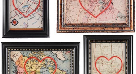 Show how much you love Canada (or another corner of the world) with a vintage map hand-embroidered with its own heart icon.