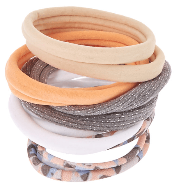 Not super convinced orange is your best friend? Try this stacker set of super soft hair elastics – they look as good on your wrist as they do keeping your ponytail up.
