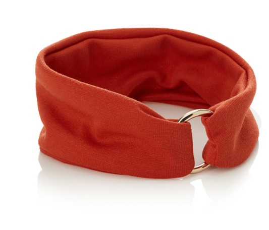 If you think orange doesn’t work with your colouring, my best advice is to go dark – like this burnt orange 70s-inspired headband with a bold brass o-ring detail.